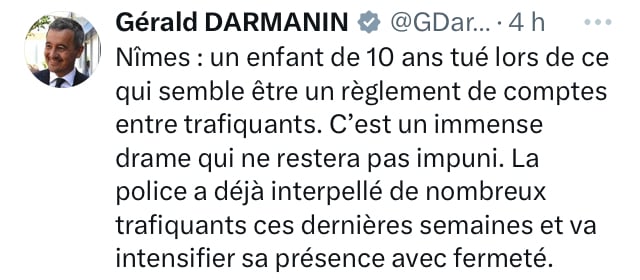 Selon le ministre de l’Intérieur, « la police a déjà interpellé de nombreux trafiquants ces dernières semaines et va intensifier sa présence avec fermeté ». Des moyens de police judiciaire supplémentaires ainsi que des effectifs de la CRS 8, une unité spécialisée dans la lutte contre les violences urbaines, vont être déployés à Nîmes, a-t-on appris auprès de l’entourage du ministre.