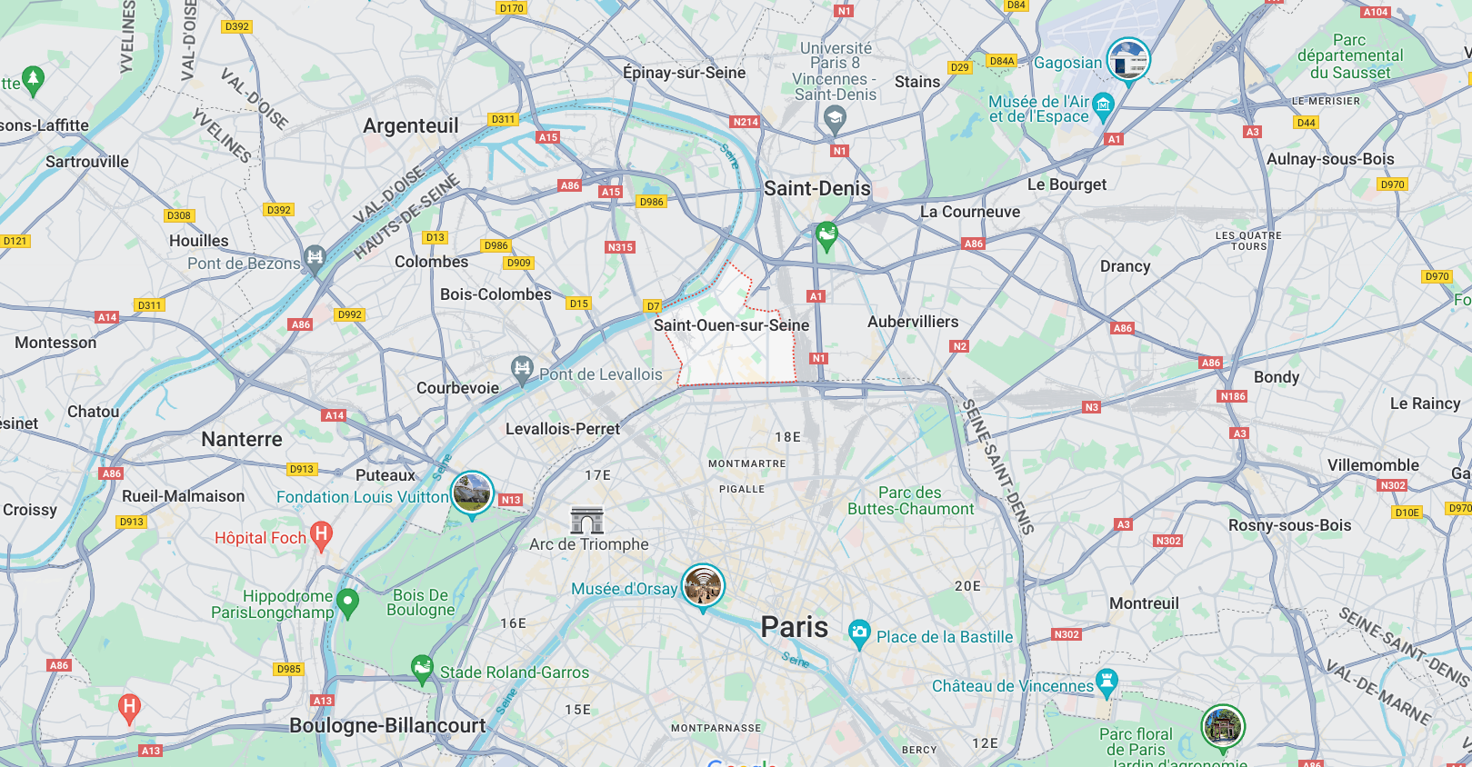 Screenshot Google Maps montrant Saint-Ouen-sur-Seine